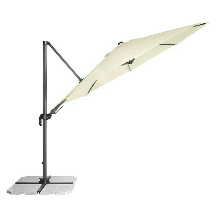 Der Derby Ravenna Pendelschirm AX verfügt über eine Kurbelmechanik und ist leicht zu öffnen. Der Bezug besteht aus Polyestergewebe, ist regenabweisend und besitzt einen Lichtschutzfaktor von LSF 50 +. Der Pendelschirm ist beidseitig axial schwenkbar und ist um 360° drehbar. Zudem ist im Lieferumfang ein Schirmständer (ohne Platten) enthalten.