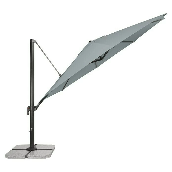 Der Ravenna Pendelschirm der Marke Derby verfügt über eine Komfort-Öffnungsmechanik zur leichteren Handhabung sowie eine großzügige Dachfläche mit einem Durchmesser von 400cm. Der Bezug aus regenabweisendem Polyester ist lichtecht und verfügt über einen guten Lichtschutzfaktor von 50+. Als weiteres Highlight ist der Schirm um 360° drehbar und kann entlang des Auslegearmes schräg gestellt werden. Somit können Sie den Schirm an Ihre individuellen Bedürfnisse für ausreichend Schatten bestens anpassen.
