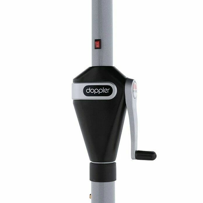 Der Doppler Active Auto Tilt LED in Anthrazit ist durch die Auto Tilt Funktion einfach zu bedienen. Durch das Weiterdrehen der Kurbel wird das automatische Neigen des Schirmes ermöglicht. Somit wird für das Aufspannen, Neigen und Schließen des Schirms so gut wie keine Kraft benötigt. Ein weiteres Highlight des Schirms sind die 6 LED-Bänder an den Schirmstreben, welche sich tagsüber dank eines Solar Panels am Schirmdach aufladen. Abends kann das Licht über einen Schalter am Gestell eingeschaltet werden. Zusätzlich wird der Gartenschirm mit einem zweiten Akku und einem USB Ladegerät geliefert, damit Sie bei längerem Betrieb auf einen Ersatzakku zurückgreifen können. Das Gestell mit Kurbelmechanik ist aus pulverbeschichtetem Aluminium, die Streben sind aus Stahl gefertigt. Der Bezug aus 100% Polyestergewebe bietet einen Lichtschutzfaktor von LSF 50+ und ist zudem regenabweisend.