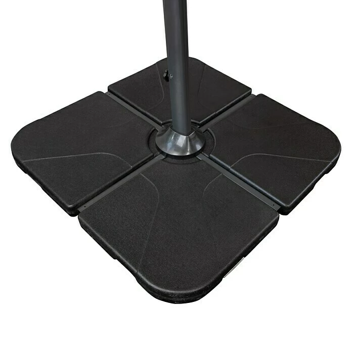 Die füllbaren Beschwerplatten von Doppler beschweren den Schirmständer, sodass der Schirm nicht umfallen kann. Die Platte aus Kunststoff ist besonders leicht und verfügt über einen Tragegriff, was den Transport erheblich erleichtert. Zur Füllung kann Sand oder Wasser verwendet werden, wobei Sand aufgrund des höheren Gewichtes empfohlen wird. Mit Sand befüllt wiegt eine Platte ca. 22,9 kg, mit Wasser befüllt ca. 15,7 kg.