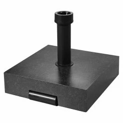 Der Schirmständer von Doppler gibt Sonnenschirmen idealen Halt sowie ausreichend Standfestigkeit. Der Kern des Ständers besteht aus Beton und besitzt eine Hülle in Granit-Optik. Mit einem Gewicht von ca. 40 kg eignet er sich für Schirmstöcke mit einem Durchmesser von 21 – 52 mm bzw. Schirme bis Ø 250 cm. Praktisch sind auch die Rollen und der eingebaute Griff, mit denen sich der Schirmständer einfach bewegen lässt. Auf der Unterseite des Betonsockels ist ein Bodenschoner angebracht, um Beschädigungen am Untergrund zu vermeiden.