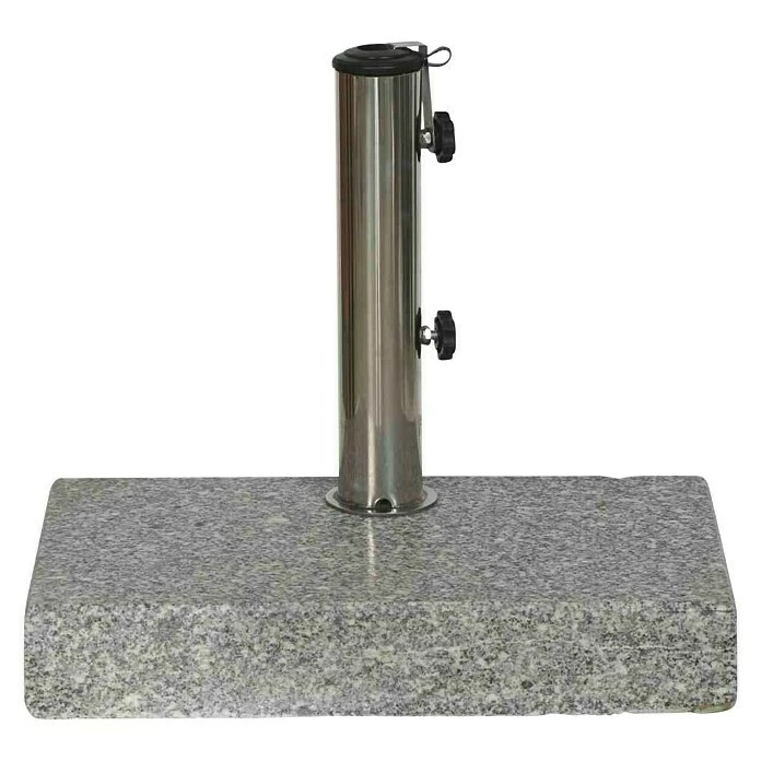 Der eckige Granitschirmständer von Siena Garden gibt Sonnenschirmen ideal Halt und ausreichend Standfestigkeit. Der Schirmfuß aus poliertem Granit hat ein Gewicht von insgesamt 25 kg und eignet sich für Schirmstöcke mit einem Durchmesser von 25 – 48 mm. Die Schirmstange wird einfach durch zwei Stellschrauben befestigt.