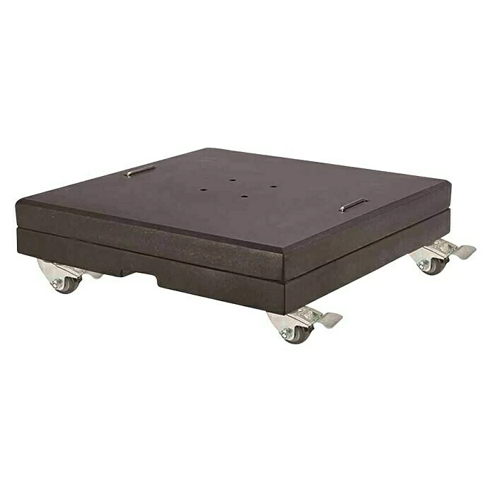Der eckige Schirmständer Ferona von Siena Garden gibt Sonnenschirmen idealen Halt und ausreichend Standfestigkeit. Der Schirmständer lässt sich durch seine vier Rollen und den praktischen Griff einfach bewegen. Am Bestimmungsort angekommen, verhindern die Feststeller an den Rollen ungewollte Bewegungen. Mit einem Gewicht von insgesamt 150 kg eignet er sich für Ampelschirme mit einem Durchmesser von bis zu 400 cm.
