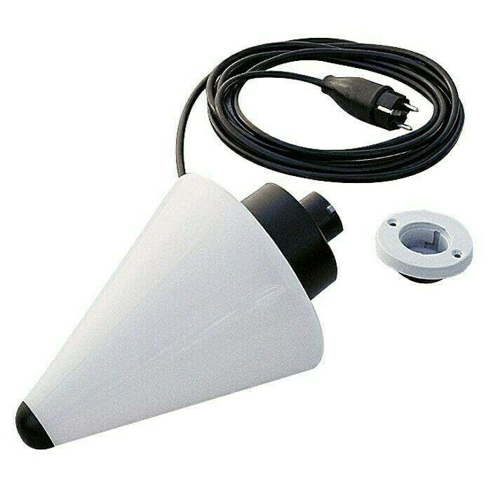 Die Hängelampe Easy Sun von Sun Garden ist bei Bedarf einer zusätzlichen Lichtquelle passend zu den Ampelschirmen von Sun Garden überaus praktisch. Sie besitzt ein Kunststoffgehäuse mit einer Länge von 26 cm, einen Ø 18 cm und eine 5 m lange Zuleitung, die auch die empfohlene 40 W Glühbirne (nicht enthalten) bei weit entfernter Steckdose mit Strom versorgt. Das ausgewählte Leuchtmittel benötigt ein E27 Gewinde und ist hinsichtlich Energieeffizienzklasse (A++ bis E) nicht beschränkt. Die Montage erfolgt in der Mitte des aufgespannten Schirms.