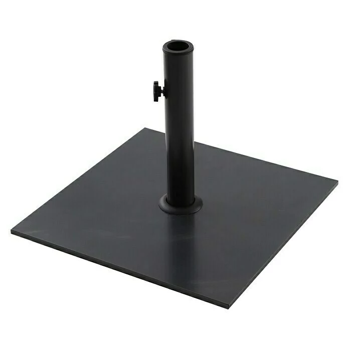 Der Schirmständer aus Metall eignet sich für Sonnenschirme mit Spannbreiten bis zu 3 m. Das schlichte Design in Schwarz wird durch nicht sichtbare Kunsstofffüße abgerundet, welche auch empfindliche Oberflächen schützen. Der Ständer kann für Rohrdurchmesser von 38 – 48 mm verwendet werden.